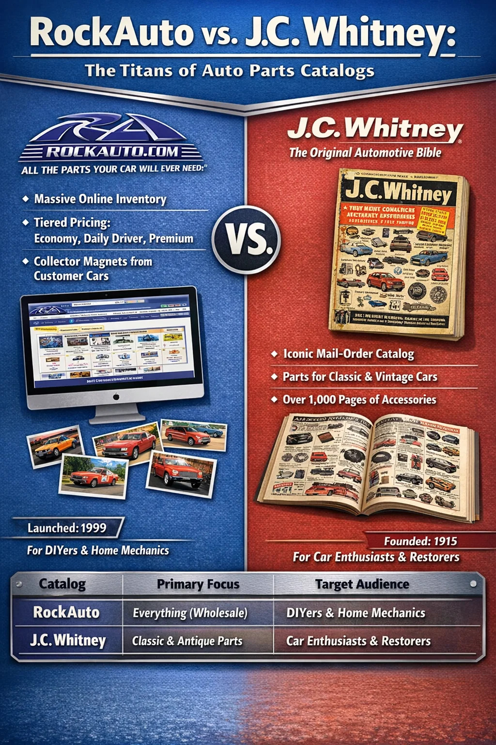 وقتی مردم در مورد معروف ترین کاتالوگ قطعات خودرو می پرسند، دو نام بر گفتگو غالب است: RockAuto برای عصر دیجیتال و جی سی ویتنی برای اهمیت تاریخی RockAuto به استاندارد طلایی مدرن تبدیل شده است و یک پایگاه داده آنلاین جامع ارائه می دهد که تقریباً همه موارد را پوشش می دهد قطعه خودرو در چند دهه گذشته ساخته شده است. برای کسانی که دوران کاتالوگ های کاغذی سفارش پستی را به خاطر دارند، جی سی ویتنی پادشاه بلامنازع بود که به عنوان "انجیل" دنیای خودروهای DIY شناخته می شود.